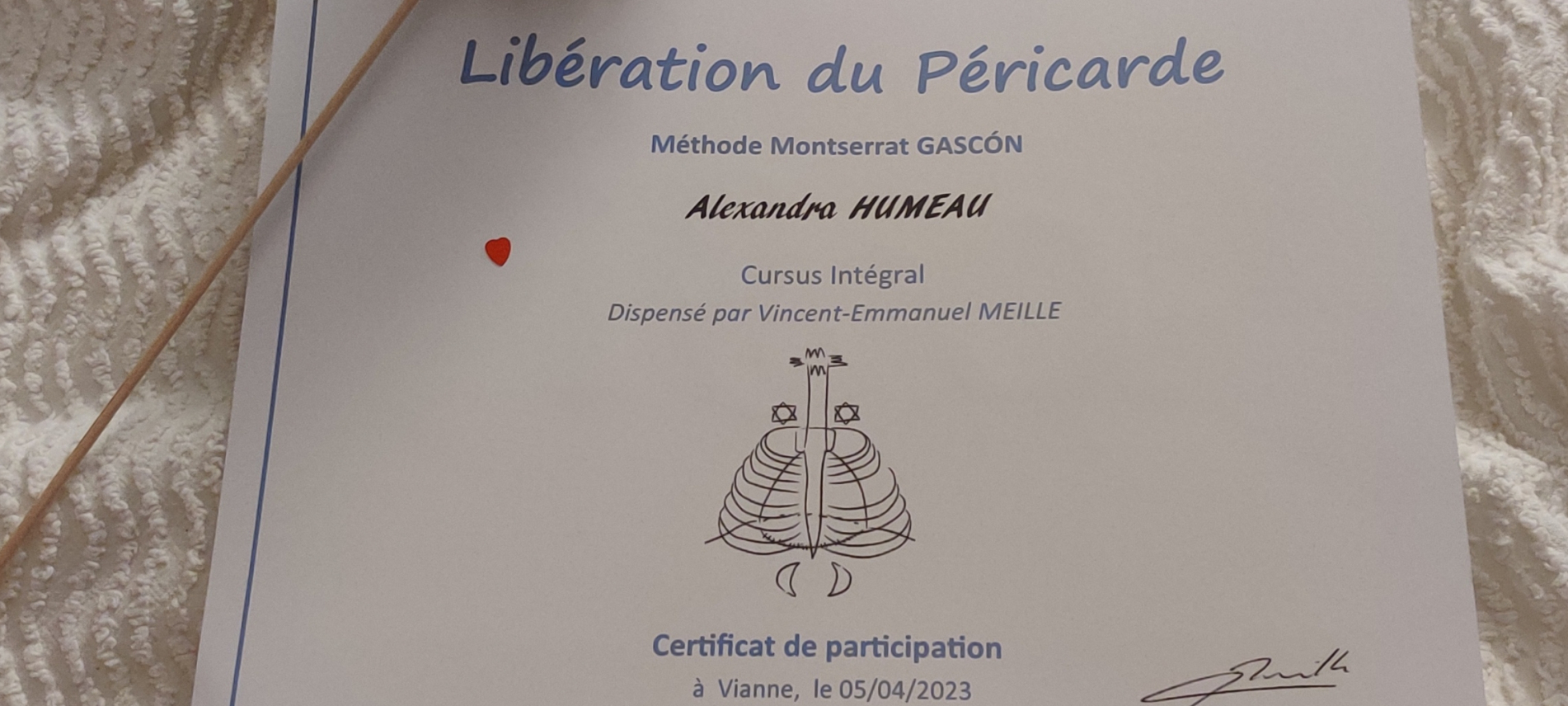 C'est en écoutant une interview de Montserrat Gascon et en découvrant le soin de libération du péricarde que j'ai eu le déclic. Tout mon être vibrait et savait que les réponses et la clé s'y trouvaient.